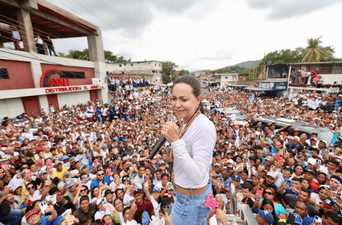 En este contexto, Machado insistió en presionar y hacerse visible en los recorridos a través del país. De acuerdo con los reportes sobre los distintos actos dados a conocer a través de la página www.ventevenezuela.org y de las cuentas en la red X @ConVzlaComando y @MariaCorinaYA, entre otras, hasta el 3 de junio de 2024, la oposición participó en 39 grandes concentraciones en las 16 entidades visitadas. Se hicieron paradas, contactos o mítines breves en 94 pueblos y localidades. En total fueron más de 150 actividades de calle y concentraciones de precampaña.