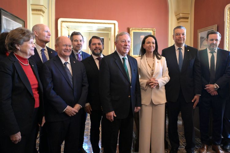En el interior del Senado, Machado sostuvo platicas con senadores como el republicano Rick Scott, quien en ocasiones anteriores había expresado su apoyo a la opositora venezolana.