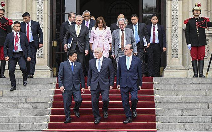 La misión, que encabeza el exministro de Relaciones Exteriores de Paraguay Eladio Loizaga, inició una intensa ronda de reuniones con una visita a Castillo en el Palacio de Gobierno, donde el mandatario aseguró que algunos sectores políticos quieren poner en peligro la estabilidad del país con "mentiras".