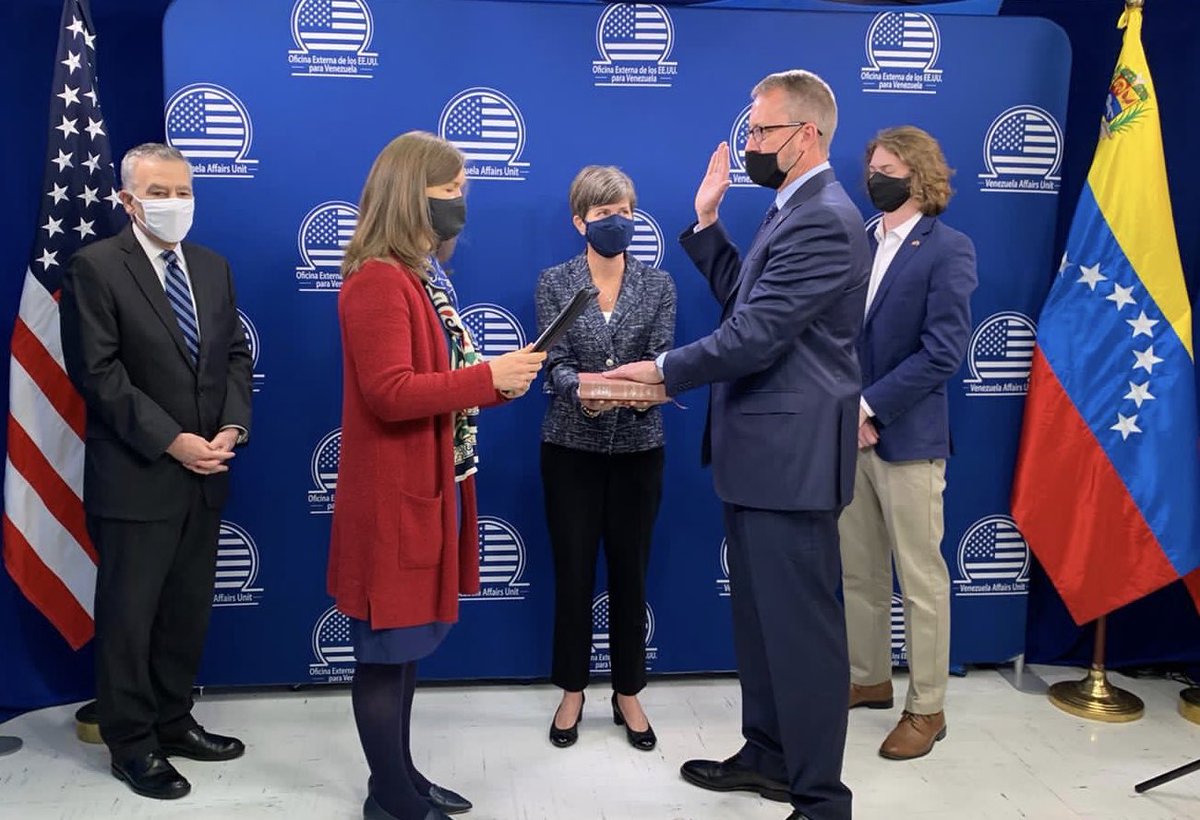 El nuevo embajador de Estados Unidos ante Venezuela nombrado por el presidente saliente Donald Trump, juró su cargo en su oficina de Bogotá, este viernes, informó en Twitter la misión diplomática estadounidense.