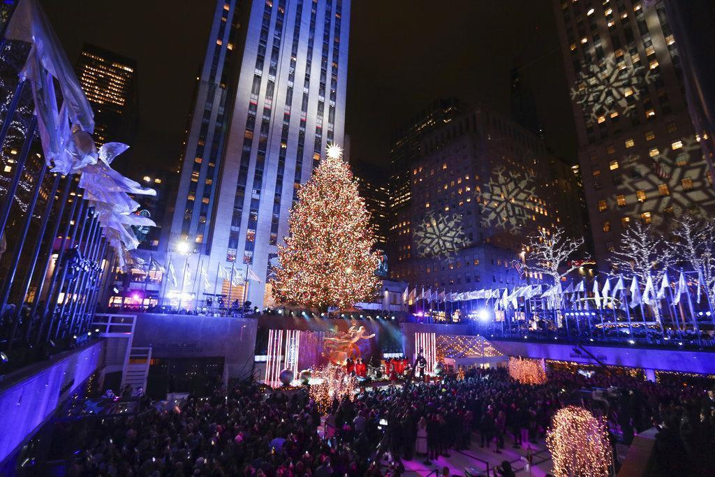 El alcalde, Bill de Blasio, fue el encargado de encender las luces del árbol de Navidad del Rockefeller Center en un espectáculo televisado que contó con las actuaciones de Diana Ross y Tony Bennett.