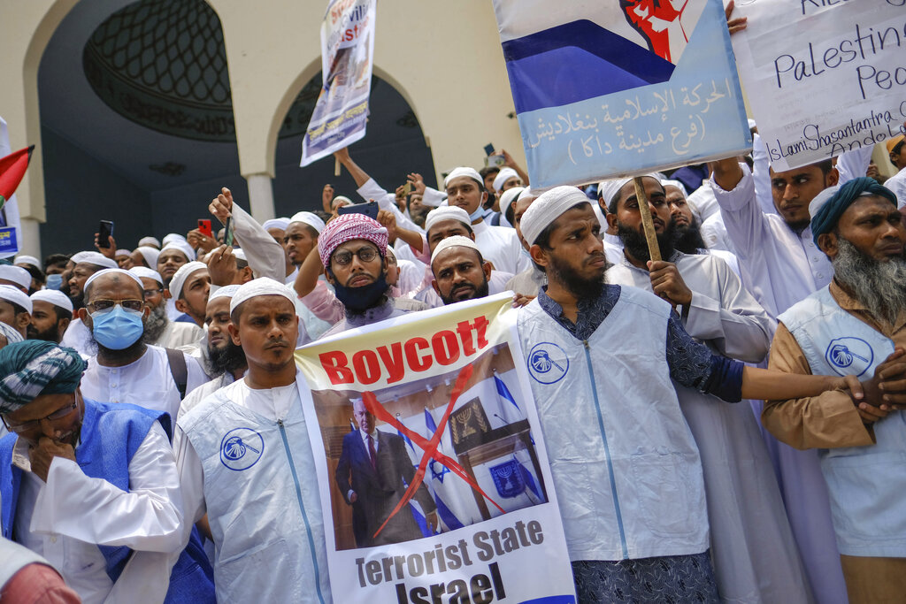 Miles de musulmanes liderados por activistas de un partido islámico marcharon en la capital de Bangladesh el viernes en protesta por los ataques israelíes contra palestinos.