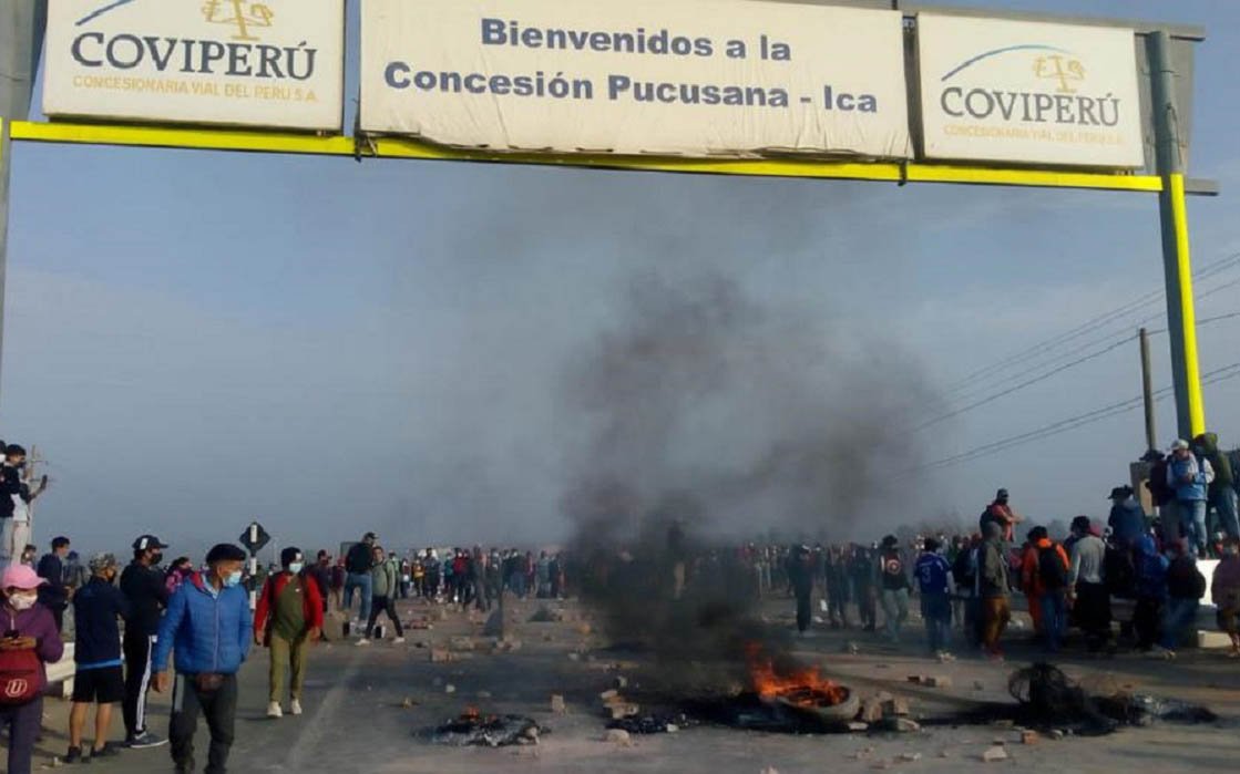 Los manifestantes también cerraron rutas con piedras y neumáticos en llamas en las regiones de Junín (centro), Cusco y Apurímac (sureste). Una treintena de vías quedaron bloqueadas.