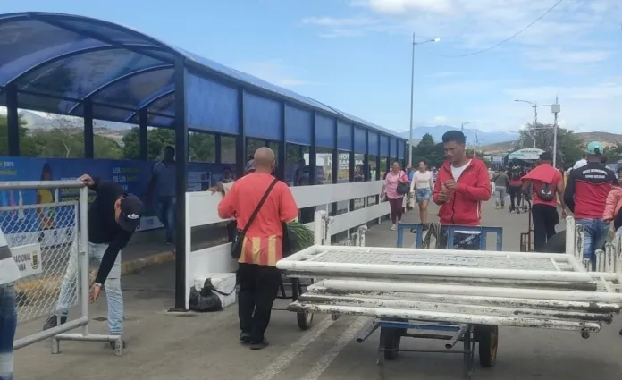 Las vallas situadas en el puente internacional Simón Bolívar, lado venezolano, fueron pintadas y reubicadas en función con los túneles que entraron en funcionamiento este martes.