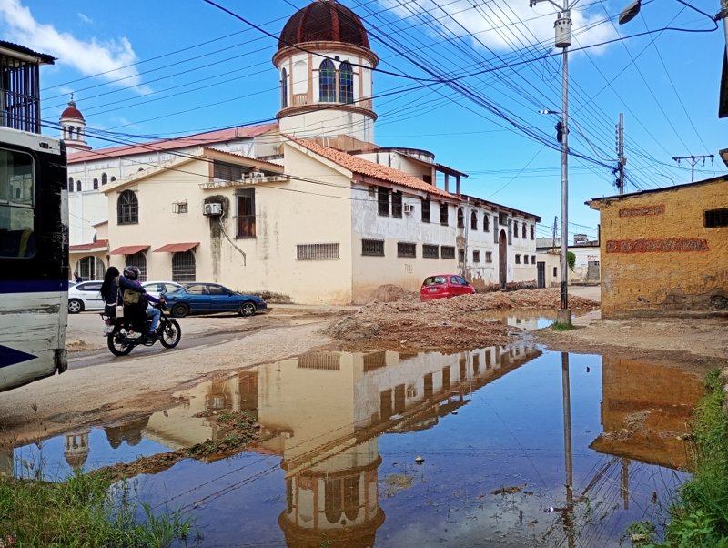 La céntrica calle Calvario de Carúpano, en el estado Sucre, parece el escenario de un desastre, luego de varias reparaciones fallidas de la tubería madre que abastece de agua esa zona de la ciudad y que viene directamente desde el parque Karupana, por donde entra el acueducto El Carupanero al casco urbano del municipio Bermúdez.