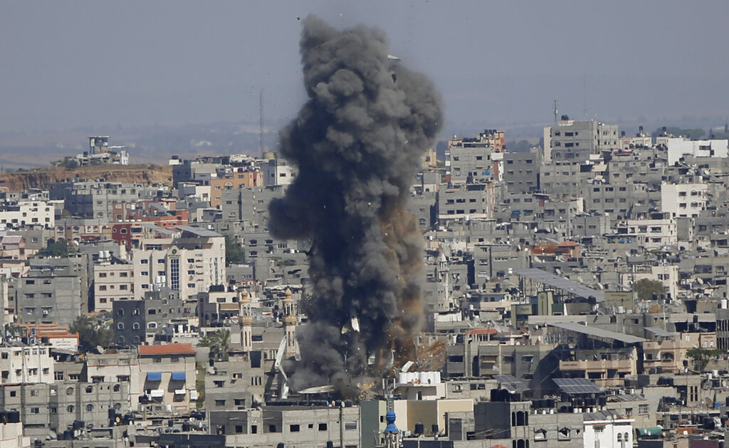 En tanto, los palestinos conmemoraron de manera sobria el término del mes sagrado musulmán del ramadán, mientras los milicianos lanzaban una andanada de proyectiles tras otra e Israel llevaba a cabo oleadas de bombardeos. Desde que empezaron los choques el lunes, Israel ha derrumbado tres edificios de gran altura que, señaló, albergaban instalaciones de Hamas.