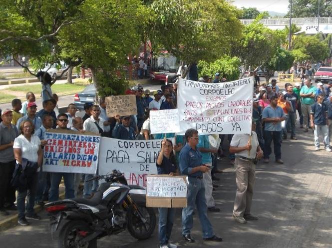La Comisión Intergremial Sindical de Anzoátegui protestó en apoyo a los trabajadores de la Corporación Eléctrica Nacional (Corpoelec), quienes iniciaron una huelga general este lunes 23.
