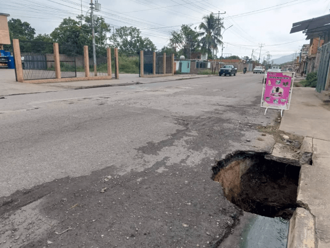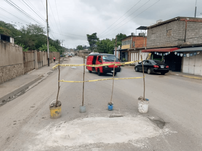 Desde ese lugar hasta la residencia Valle Los Moyas hay varios orificios más en la vía e incluso, uno de esos tuvo que ser tapado recientemente por los mismos residentes de la zona, debido a su alto nivel de peligrosidad.