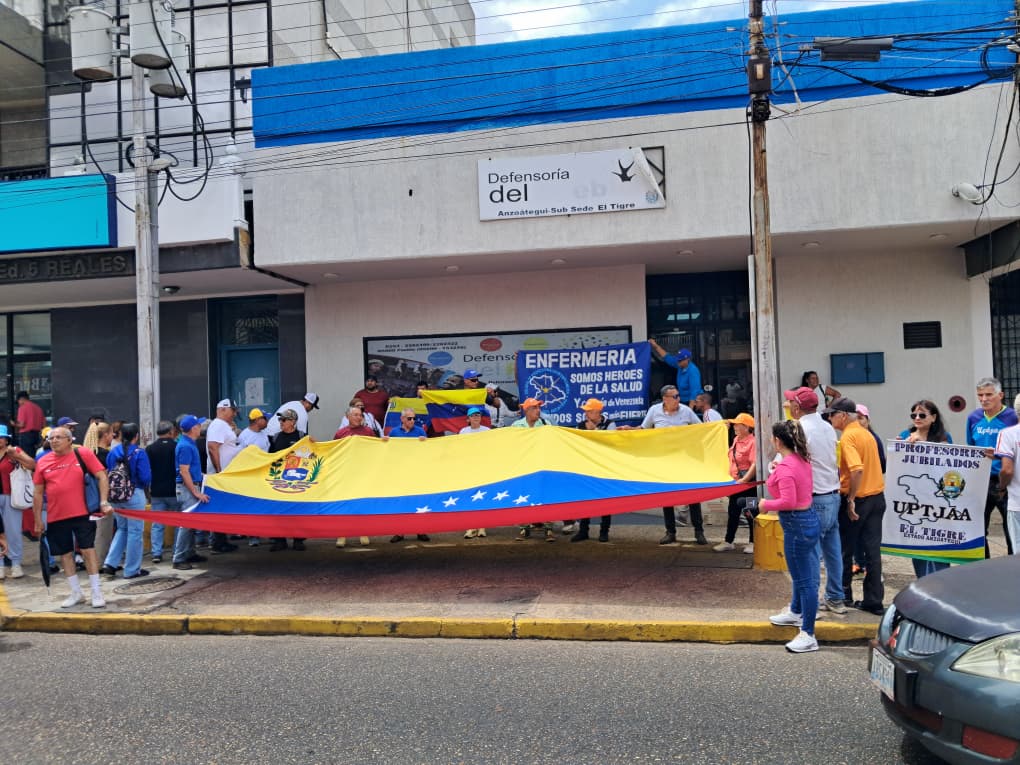 Con una movilización hacia la sede de la Defensoría del Pueblo en El Tigre, estado Anzoátegui, la mañana de este jueves, 9 de abril, gremios de trabajadores activos, jubilados y pensionados se manifestaron para protestar una vez más por salarios dignos.