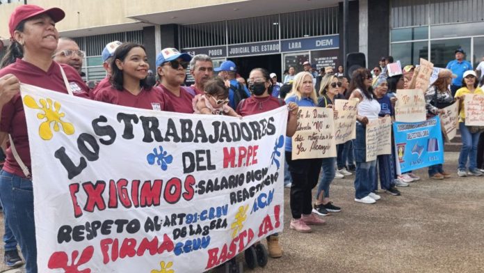 Trabajadores del sector público se congregaron la mañana de este 12 de marzo en la Plaza de la Justicia de Barquisimeto, para protestar por la crisis salarial y exigir mejoras en las condiciones laborales.