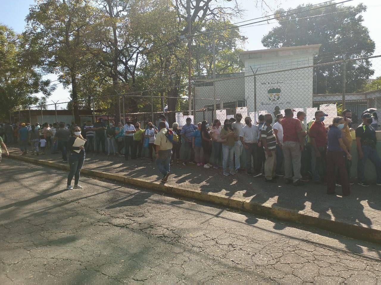 Mientras, en la E.B. Simón A. Jiménez y la U.E. Menca de Leoni, se mantenían largas colas desde las 9:00 am y continuaban llegando electores.