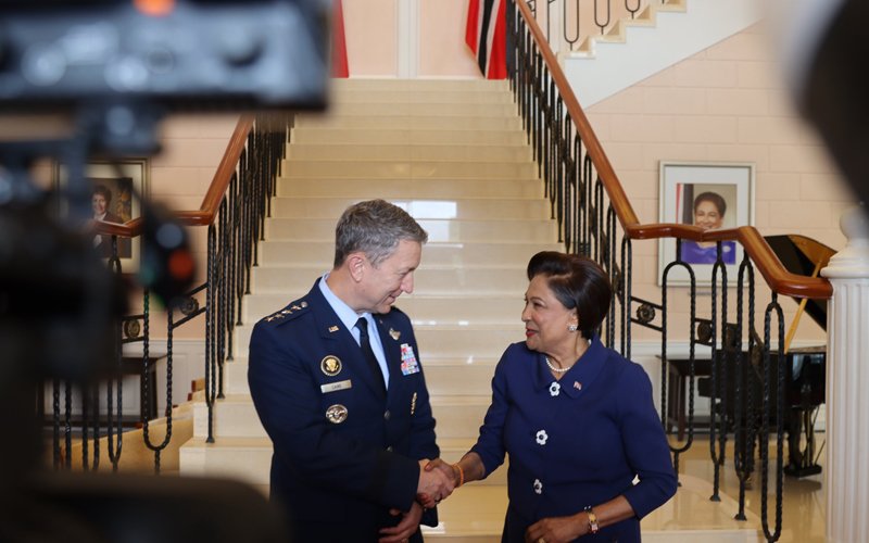 La primera ministra de Trinidad y Tobago, Kamla Persad-Bissessar, se reunió con el jefe del Estado Mayor estadounidense, Dan Caine / Foto: Cortesía