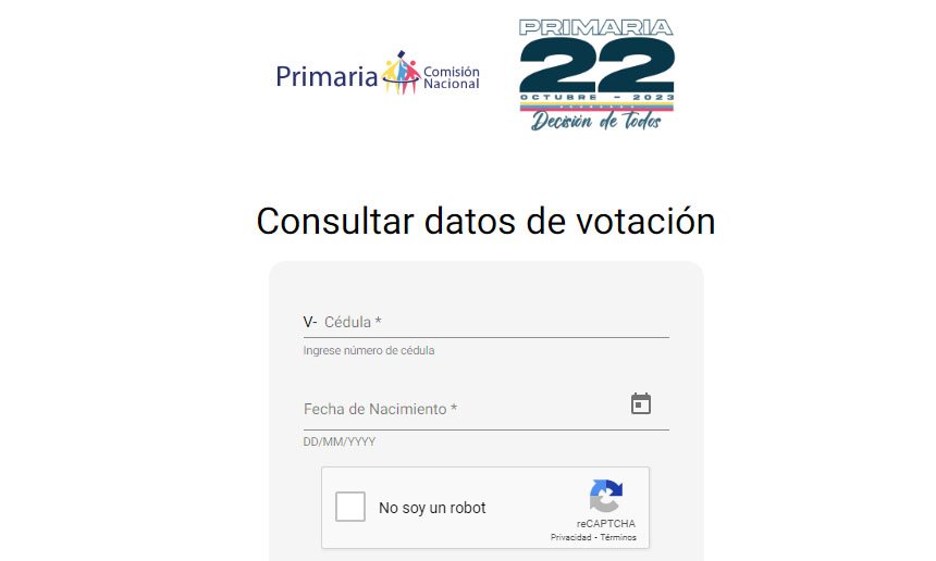 La CNP explicó que el usuario debe ingresar a buscadorprimaria2023.com y consultar dónde le corresponde votar, para ello, debe suministrar número de cédula y fecha de nacimiento.