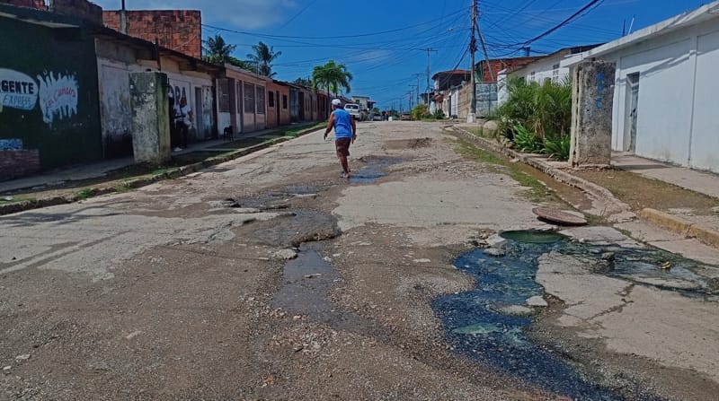 Quienes entran a la urbanización Agustín Ortiz Rodríguez de Playa Grande, en el municipio Bermúdez del estado Sucre, se consiguen con un panorama calamitoso en la vialidad, a lo que se suman las roturas de la tubería El Carupanero, que recorre todo el urbanismo, más los derrames de las bocas de visita que colapsan cuando apagan la estación de bombeo.